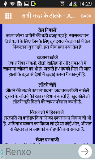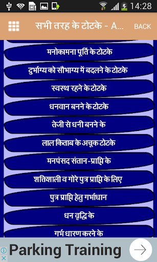 in this application like Tricks for Being successful, Tricks for making mind fast, tricks to remove any kind of bad luck, tricks for being healthy, tips for becoming rich etc. Reading about different types of topics of सभी तरह के टोटके in your own mother tongue makes it very fun and exciting. If you open any one topic, you will find a list of details that you can use to prepare yourself for facing any kind of negative situation. The list of various totke that you will find in this application won’t be found anywhere else.