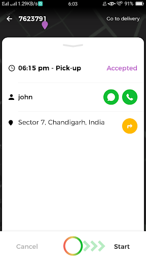 The driver accepts the Lead and arrives at the Pickup Location (usually the Preidentified Warehouse) of the consignor