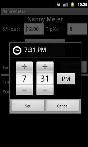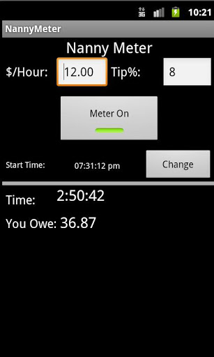 Nanny Meter is an app that lets you know how much you owe your baby sitter. You start it when the sitter arrives and it keeps track automatically just like a taxi meter.