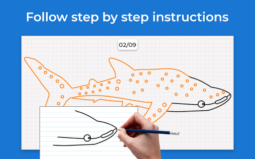 Aplikasi ini mempunyai arahan lukisan mudah dalam format langkah demi langkah, dan tutorial mengajar anda bagaimana untuk melukis lakaran jerung dengan mudah. Br>