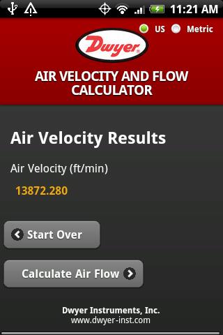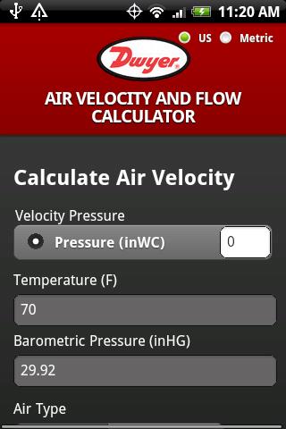 The Dwyer Air Velocity Calculator makes spot checking with Dwyer Pitot Tubes quick and easy. Calculates air velocity and flow from a variety of inputs, and supports both US and Metric units