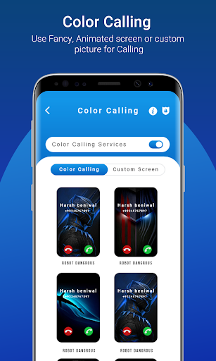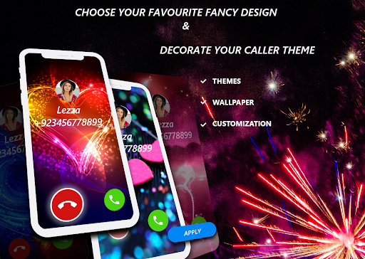 Ini mempunyai panggilan Tema untuk Android. Ia menawarkan anda dengan tema skrin panggilan warna yang indah. Dengan penukar skrin pemanggil, anda boleh memilih mana-mana tema panggilan untuk menggantikan skrin panggilan membosankan anda. Skrin Flash Panggilan Warna akan mencerahkan hari anda setiap kali anda memanggil dengan skrin panggilan warna. Ciri ini menggantikan tema skrin panggilan lalai anda, yang menyediakan pelbagai tema skrin pemanggil yang lucu, untuk menyesuaikan skrin pemanggil.