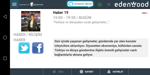 Edenwood Smart Center also syncs with your TV, provides comprehensive Electronic Program Guide and allows full control of your TV even with your voice. By this way, you can record or remind your desired programs over the application. Using SocialTV functionality, you may access to social services such as Twitter and Facebook.