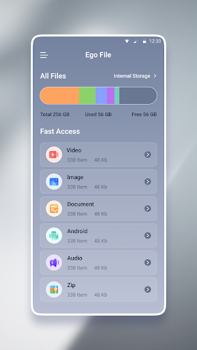 Ego File includes different file categories such as videos and pictures. It allows users to find the corresponding files more quickly and perform file operations.