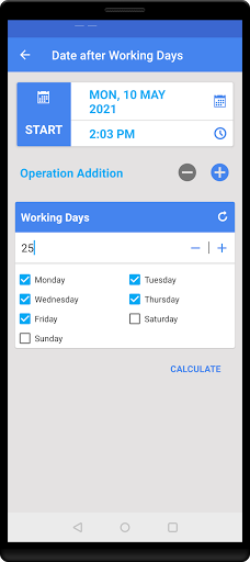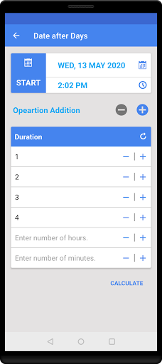 5. Apl menyokong dua mod, penambahan dan penolakan untuk mengira perbezaan antara tarikh, hari, minggu dan masa.