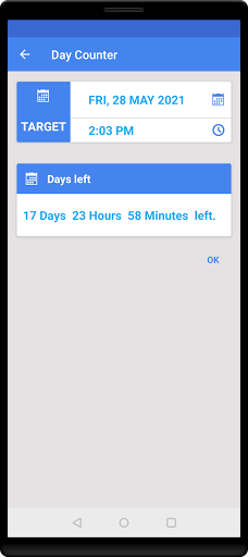 Hitung bilangan hari yang tersisa dari tarikh semasa ke masa depan tarikh & masa yang dipilih.