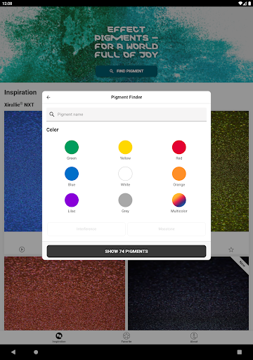 The App is a digital version of the EMD General Color Card that is always at hand, right in your pocket. It is equipped with interactive videos that show the behavior of each pigment angle dependent. You can just browse through the colorful world of EMD Effect Pigments to get some inspiration or search for information on the product you are interested in.