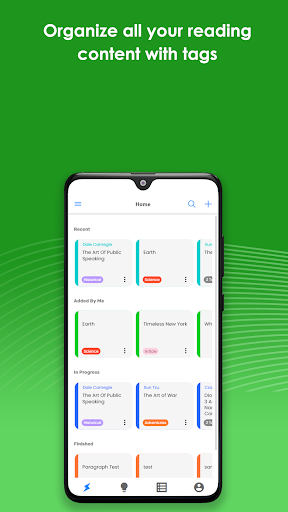 Penjejakan kemajuan dan pencapaian yang dinamik untuk motivasi.Meningkatkan pemahaman dan pengekalan bacaan.Sedap bacaan dan pemahaman bacaan.8.Bacalah di mana sahaja, bila -bila masa: