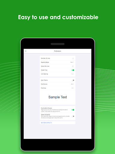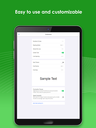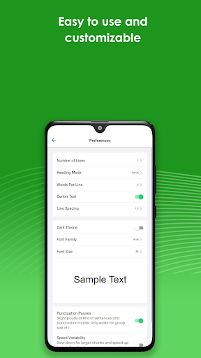Meningkatkan kemahiran membaca anda dengan Spreeder!Melepaskan kuasa bacaan kelajuan dan menyerap pengetahuan lebih cepat dari sebelumnya.Sama ada buku, artikel, atau dokumen itu, Spreeder adalah jalan anda untuk menguasai seni membaca pada kelajuan kilat.