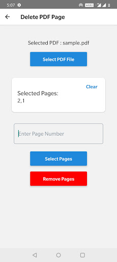 Hanya pilih PDF, sebutkan nombor halaman yang ingin anda padamkan dari halaman PDF dan klik butang Padam.