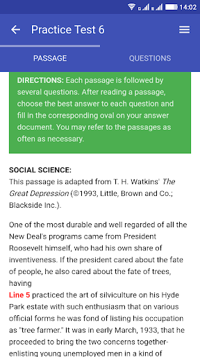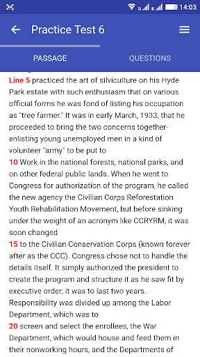 Four passages belonging to four genres -- prose fiction, social sciences, humanities, and natural sciences comprise the Reading test. As passages always follow this order, and each passage is followed by 10 questions this gives the test taker the advantage of working on those passages belonging to the genres he is most comfortable with first and save the harder ones for the end.