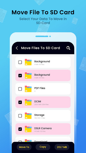 You can copy or move files to SD Card and also move to SD Card with the help of Files & Folders to SD Card - Copy to SD Card, Data transfer from phone.