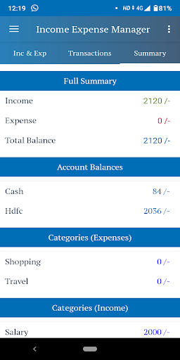 4. Ringkasan Lihat - Gambaran Keseluruhan pendapatan, perbelanjaan dan jumlah baki anda. Bersama ini, anda boleh menjejaki semua baki akaun anda dan perbelanjaan anda dalam kategori tertentu.