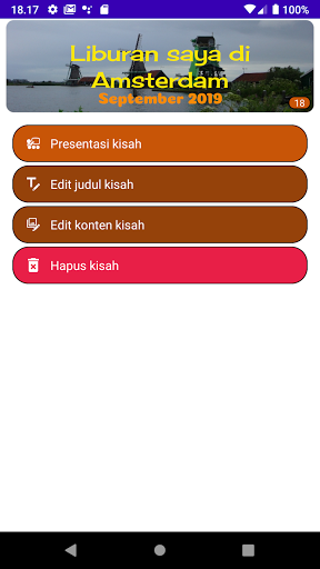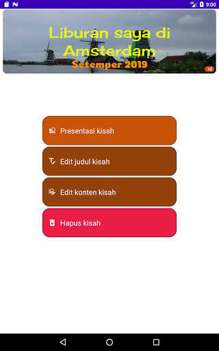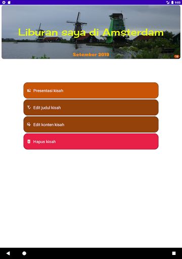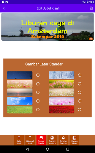 Gunakan warna teks dan gambar latar yang sesuai untuk menetapkan tajuk cerita. Gambar latar tajuk boleh menggunakan gambar standard yang disediakan atau anda boleh menyesuaikan gambar sendiri yang menarik.