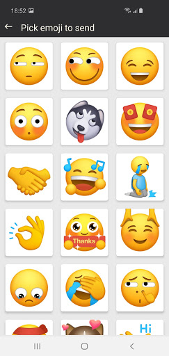 - berkongsi emoji, emotikon dengan rakan-rakan anda pada bila-bila masa, di mana sahaja