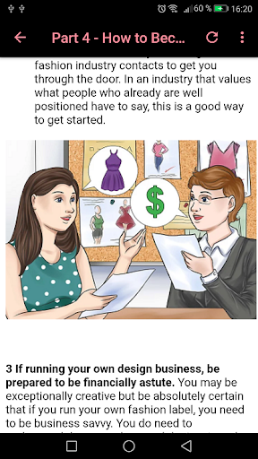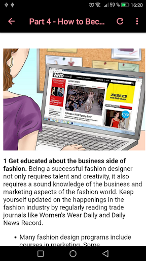 Become a professional fashion designer, improve your fashion drawing, tailoring and design skills, knowledge of the fashion industry and unmatched perseverance. You will also need to build a strong fashion portfolio and strengthen your knowledge of business and finance in general. With our app How To Become a Fashion Designer you will learn everything about the profession of model designer