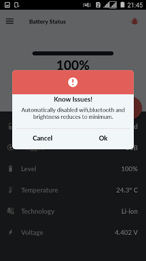displays battery related information in main screen where your can see battery temperature, battery voltage, battery technology, current battery health, battery charging plug such as the USB..