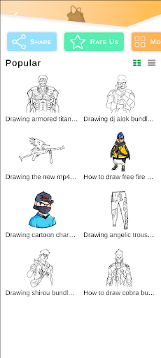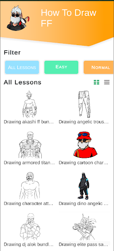 Dapatkan pensil, pemadam, dan kertas putih anda siap.Buka Cara Lukis FF Semua Aplikasi, Pilih salah satu watak dan lukis di atas kertas mengikut arahan dalam aplikasi.Aplikasi saya, bagaimana untuk menarik watak -watak FF, membantu anda.
