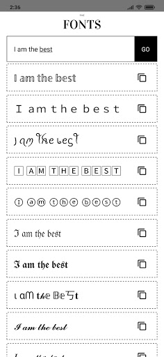 Tunjukkan gaya anda di Instagram, Twitter, Facebook Bio dengan fon.Dapatkan lebih suka.Dapatkan lebih banyak pengikut.Dapatkan lebih banyak tarikan di media sosial.Tekan kawan-kawan anda di WhatsApp, Telegram atau iMessage dalam fon sejuk.Semua fon adalah percuma!Anda boleh menggunakannya di mana-mana media sosial.Tulis teks anda dan salin font sejuk!Font percuma untuk gaya anda!