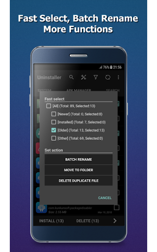 ✔ Apk Manager - manage apk files on SDCard with delete, instal, rename, move to folder, delete duplicate file function