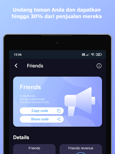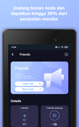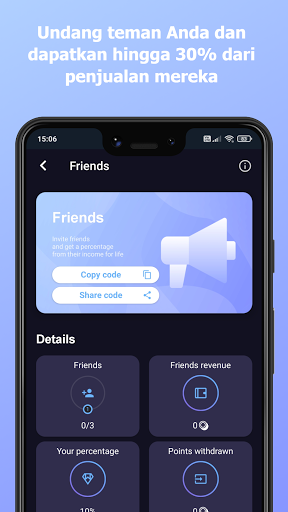 ✓ Undang rakan anda dan dapatkan 10% dari pendapatan mereka seumur hidup. Tingkatkan komisen dengan menaikkan level akaun anda untuk menyelesaikan tugas dan dapatkan hingga 30% dari pendapatan mereka.