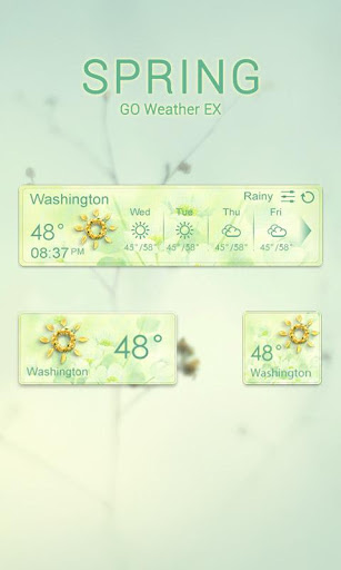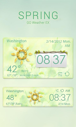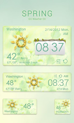 Tema Spring menyokong 4 * 1, 4 * 2, 2 * 1 saiz. Ia menyampaikan maklumat cuaca yang paling tepat dari mana-mana sahaja pada bila-bila masa.