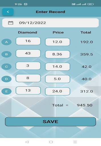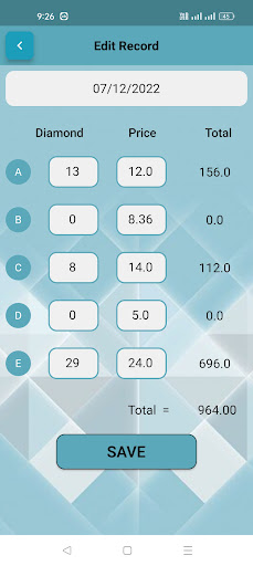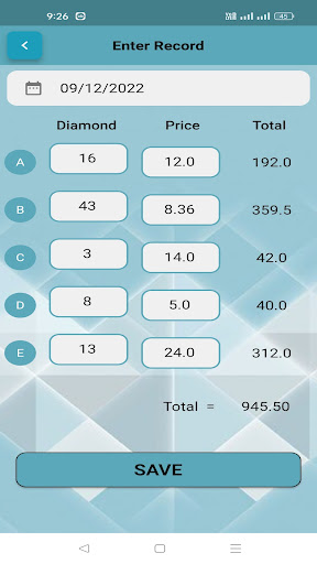 Aplikasi ini tersedia dalam bahasa Inggeris dan bahasa Gujarati.Aplikasi ini digunakan terutamanya untuk orang yang bekerja di Diamond Industries.Aplikasi ini akan membantu mereka menyimpan rekod kerja harian mereka dengan cara yang sangat mudah dan efisien di telefon mereka dan melihat rekod mereka yang mudah dan mudah difahami..
