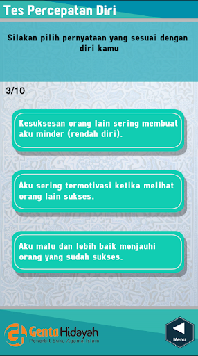 Aplikasi ini adalah bonus dari buku yang diterbitkan oleh penerbit Genta Hidayah untuk membantu user memahami kepribadiannya