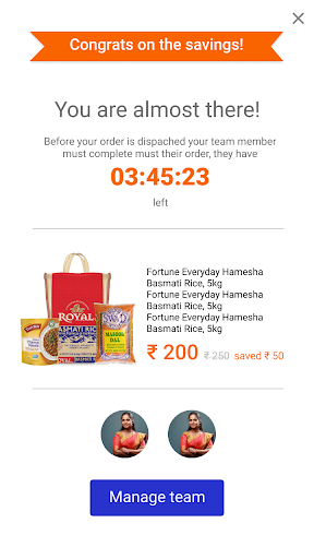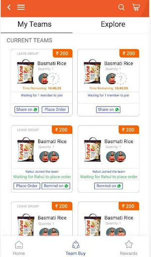 Membeli-belah sosial atau E-dagang sosial adalah konsep yang baru dan menarik dan salah satu ciri yang menonjol dari aplikasi membeli-belah dalam talian kami adalah ciri platform perdagangan sosial yang dipanggil "Beli Pasukan ". Hanya lakukan membeli-belah runcit dalam talian anda dengan rakan dan keluarga anda dan beli bersama untuk memenangi diskaun yang menakjubkan! Hanya pilih produk yang layak untuk membeli pasukan dari senarai belanja runcit kami dan kongsi perjanjian dengan rakan dan keluarga anda. Sebaik sahaja pesanan diletakkan, dapatkan diskaun ke atas produk yang dibeli dan dapatkan penghantaran runcit tanpa kerumitan.