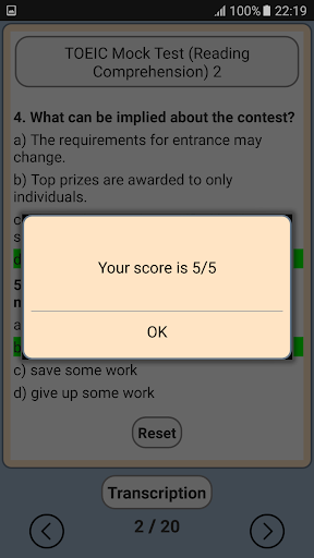 The tests will support many English learners all over the world to practice within the specified time limit and to check their scores immediately. The tests have been made by ESL professionals. Therefore, these tests help to simulate an examination environment and consist of the latest types of questions on various work-related issues.