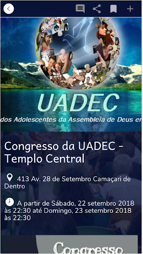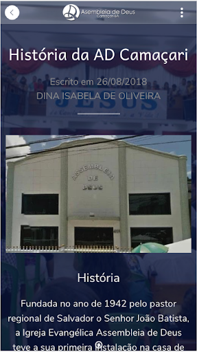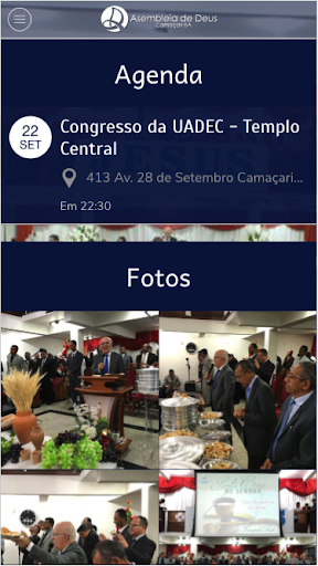 Aplicativo criado para informar os irmãos acerca de toda a programação de eventos, congressos, agendas, endereços dos templos localizados no município, conteúdos de auxílio espiritual e diversas informações acerca das atividades realizadas pela Igreja Assembleia de Deus em Camaçari, através do seu corpo ministerial, uniões de departamentos, departamento de missões, entre outros.