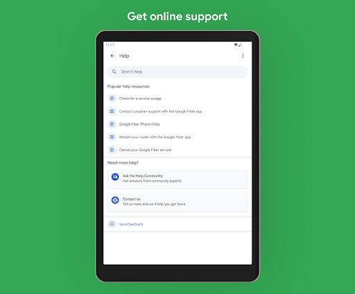 Akses Pusat Bantuan Google Fiber.Cari jawapan kepada soalan biasa dan hubungi pasukan Google Fiber untuk mendapatkan bantuan.