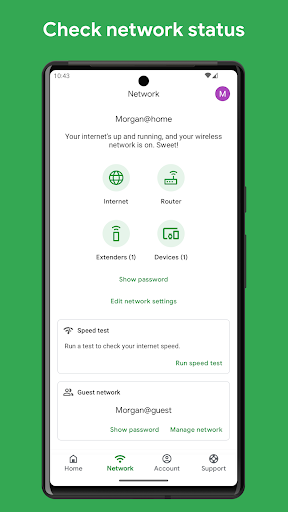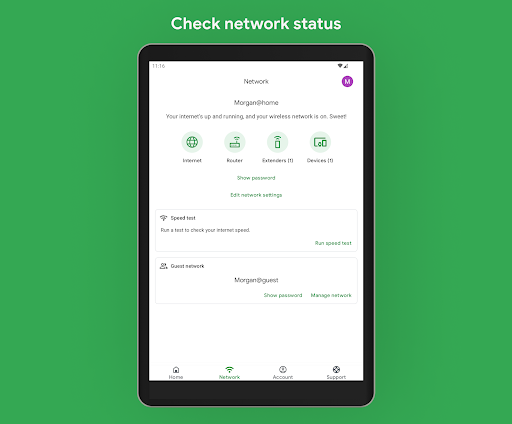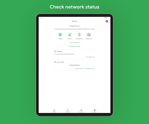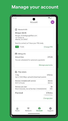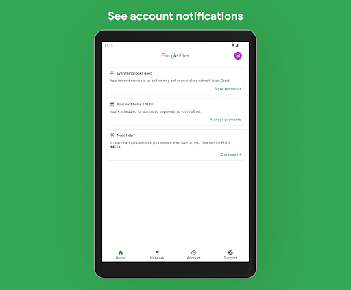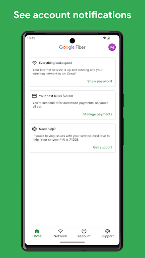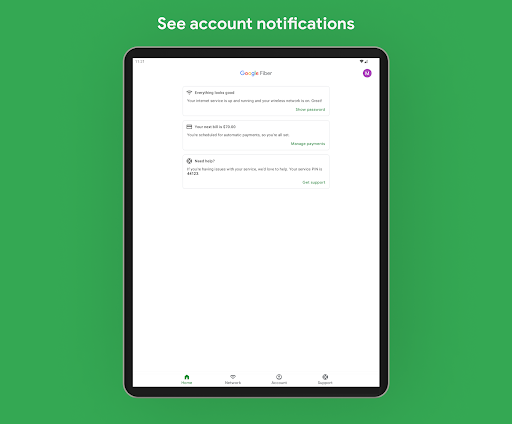 Mudah menguruskan perkhidmatan Internet Google Fiber anda.Jalankan ujian kelajuan, edit tetapan rangkaian anda, mulakan semula penghala anda, dan kongsi kata laluan Wi-Fi anda dengan keluarga dan rakan-rakan.