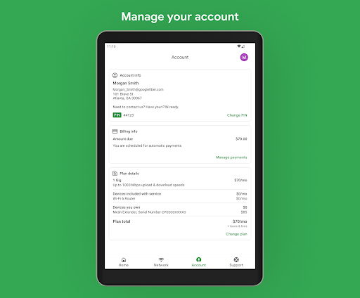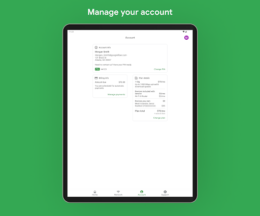 Urus akaun Google Fiber anda.Lihat baki semasa anda dan pernyataan sebelumnya, dan dengan cepat menguruskan pembayaran anda.