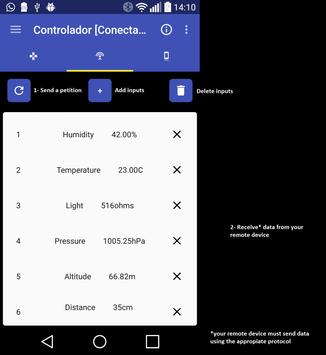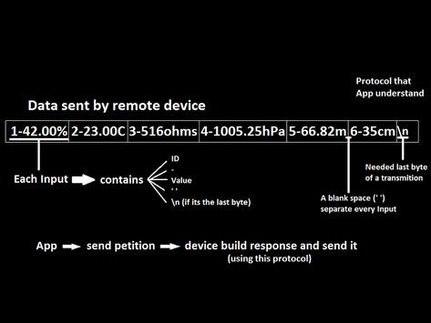 This app can receive information transmited by your connected device to respond your petitions (you must program your remote device, e.j. an Arduino).