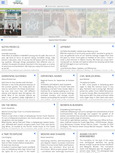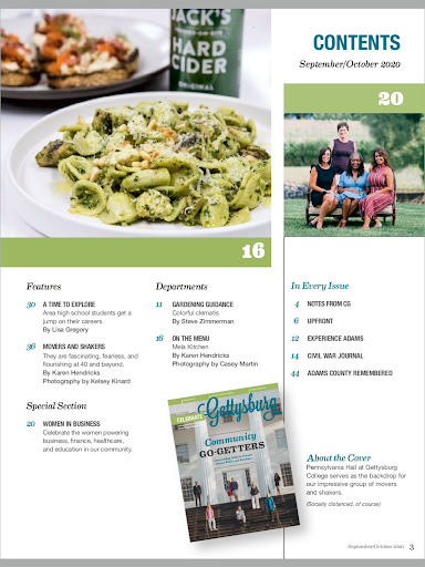 Raikan Gettysburg meneroka aspek kehidupan kota kecil yang menjadikan Adams County sebagai tempat yang istimewa untuk dipanggil ke rumah dan dikunjungi.Dalam setiap terbitan dua bulanan, Celebrate Gettysburg menampilkan artikel mendalam, fotografi yang menakjubkan dan jabatan berulang yang menyoroti kehidupan yang baik di kawasan kami.