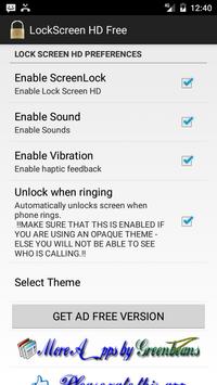 First time you should enable screen lock from the PREFERENCE screen. Through the PREFERENCE screen you can enable/disable sound and vibration. You can also control whether the screen locks automatically when a phone call comes. And of course you select the THEMES from here.