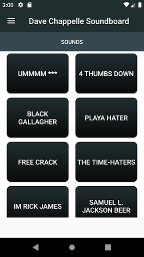 Dave Chappelle Soundboard contains phrases, quotes and sounds of David Khari "Dave" Webber Chappelle. You can share your favorite Dave Chappelle sounds with your friends. If you like the Dave Chappelle Soundboard, you can share this app.