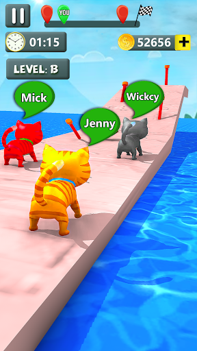 - Persekitaran dan trek yang berlainan dalam Run Race Cat Games
