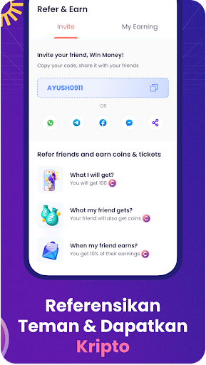 Dengan ciri Rujukan dan Dapatkan kami, anda boleh mendapatkan lebih banyak crypto dengan menjemput rakan -rakan anda untuk menyertai keseronokan.>