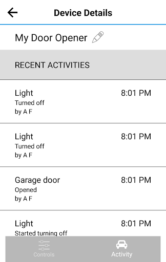 Tidak perlu risau lagi adakah pintu garaj anda ditutup.Aplikasi Amarr Entrematic Garage Door Controller memberitahu anda tentang siapa yang mengendalikan pintu garaj dan lampu pintu garaj anda dan bila, menjejaki sejarah aktiviti pintu garaj untuk keselamatan anda.