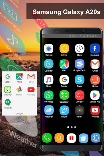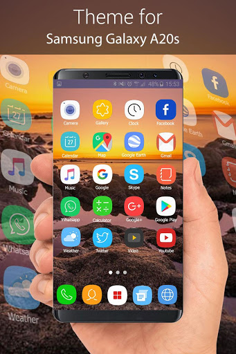 Galaxy A20s Theme offers HD icon pack elegantly designed to give your phone a smooth, quick and faster look and user experience.