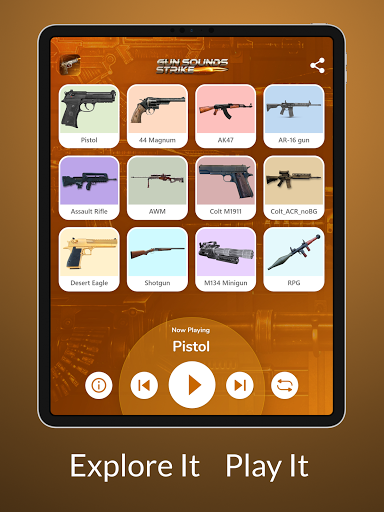 Rasa seperti menembak musuh anda dengan magnum 44 seperti pro yang cepat menarik?Atau adakah anda Terminator seterusnya untuk membawa pistol mesin besar memusnahkan musuh anda?Strike Sound Gun adalah aplikasi bunyi pistol terbaik yang mengandungi senjata dari Vintage K98 ke pistol laser moden yang membawa anda pelbagai bunyi senjata untuk memberi anda keseronokan yang menarik bunyi pertempuran sebenar.Aplikasi ini bukan sahaja memberi anda keseronokan bunyi sebenar setiap senjata tetapi juga akan memberi anda penerangan ringkas tentang semua senjata yang disenaraikan yang akan menjadikan anda pro dalam senjata di kalangan klan anda.Bunyi seperti pro dan menembak dengan keyakinan semasa menggunakan serangan bunyi Gun.