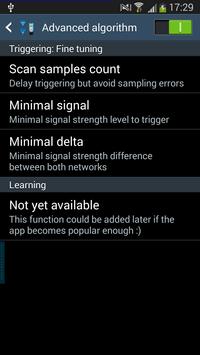 The trigger algorithm and the signal difference computing are adjustable to match your own wishes. You can also filter many networks from the known ones, in order to avoid an automatic swapping to them.