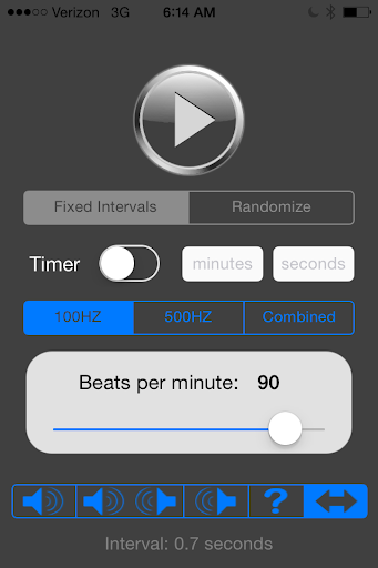 Aplikasi ini menyediakan nada yang boleh diprogramkan untuk mengulangi pada pelbagai kelajuan seperti metronom muzik. Ia boleh digunakan untuk berjalan kaki atau latihan lain. Kelajuan penui dikawal dan boleh ditetapkan ke tahap latihan yang selamat. Ia juga membolehkan pengguna untuk memilih nada sebelah kanan sahaja, hanya nada sisi kiri, nada reciprocating atau nada dua hala. Ciri lain adalah fungsi sisi dan kelajuan rawak.
