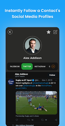 Tidak perlu membuka sosial yang berbeza Aplikasi media setiap hari untuk melihat jawatan baru kenalan. Pilih kenalan dari senarai kenalan anda dan letakkan nama pengguna mereka di rangkaian sosial. Kemudian, anda boleh dengan cepat melihat profil mereka dan jawatan baru dari Facebook, Messenger, Instagram, Twitter, dan Blog di satu tempat.