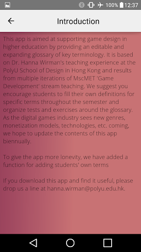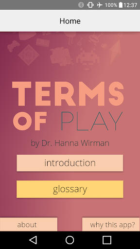 If you are just getting started in game design, then you probably have heard of the different terms thrown around and wondered what they mean. In game design, there are many components to take into consideration such as genre, platform, UI, UX etc. With each component comes new vocabulary and a wide range of acronyms and terms frequently used in the game world. This "Terms of Play" glossary is specifically aimed at supporting game design learning in higher education by providing a comprehensive, editable and expandable glossary of commonly used terminologies. The app provides an A-Z index of glossary terms for your gaming needs with an easy to use style sheet based output and automatically rendered index. With this, you can make a glossary of terms that is completely your own!