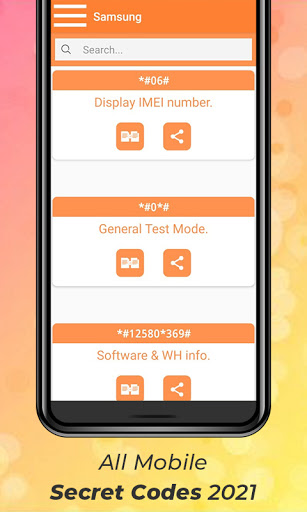 Banyak orang menggunakan telefon bimbit 📱 tetapi mereka tidak menyedari ciri-ciri yang menakjubkan yang tersembunyi di dalamnya. Nampaknya sukar untuk mengetahui tentang fakta-fakta ini di dalam peranti anda tetapi tidak lagi, hanya memasang ini menakjubkan semua kod rahsia mudah alih 2021 - aplikasi kod telefon! Dapatkan tahu tentang ciri tersembunyi Android serta iPhone seperti cek IMEI atau lebih. Tiada protokol tambahan yang diperlukan untuk mengutuk kod dalam telefon anda hanya salinan dan kemudian tampal.