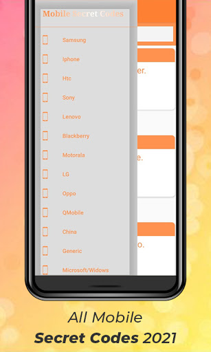 Aplikasi mengandungi kod rahsia semua peranti mudah alih seperti Samsung, iPhone, HTC, Sony, Lenovo, Blackberry, Motorola, LG, Oppo, Qmobile, China, generik, Microsoft / Windows, Huawei, Infinix, Vivo, Acer, Xiaomi dan Nokia.