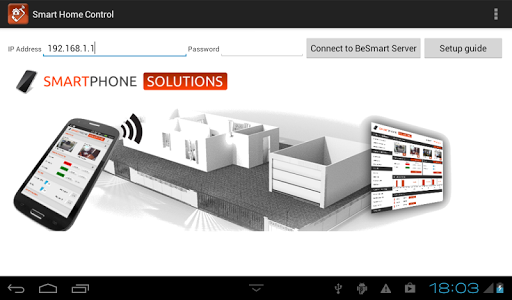 With this software and BeSmart server deployed in your LAN or WiFi network you can control lights, doors, IP Cameras, Central Heating, Domestic Hot Water System, Air-conditioning and many other.